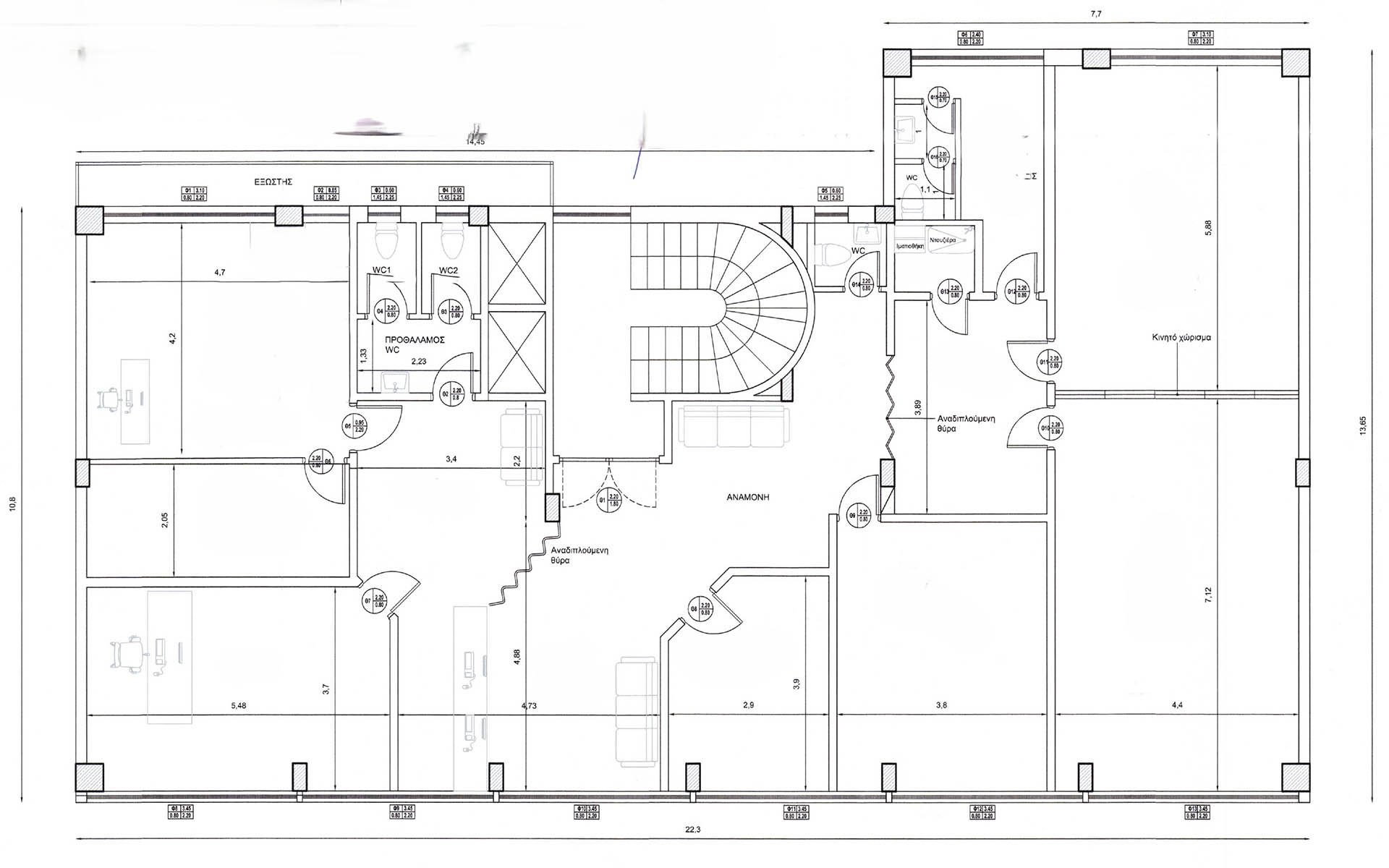 - 4 wc, δομημένη καλωδίωση , ο χώρος διαμορφώνεται εύκολα, χωρίσματα έχουν γίνει μόνο με γυψοσανίδες
